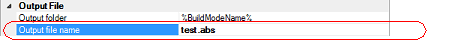 Enter the hex file name to be changed to in the [Output file name] property in the [Output File] category.