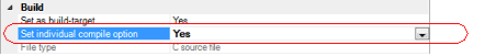 Select the C source file on the project tree and select the [Build Settings] tab on the Property panel.
