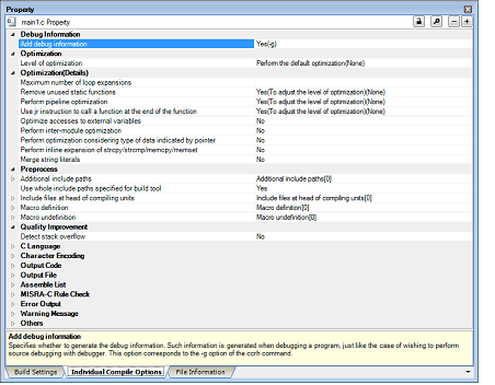 Click [Yes] in the dialog box. The [Individual Compile Options] tab will be displayed.