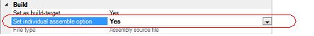 You can set assemble options for the assembly source file by setting the necessary properties in this tab.