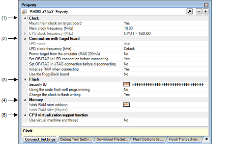 Select whether to initialize the RAM when connecting to the debug tool. |