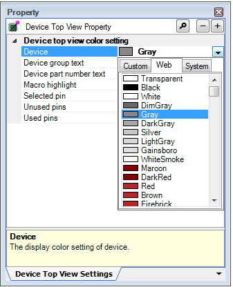 To select the color to be displayed, click [Device Top View Settings] tab >> [Device top view color setting] in the Property panel and select the color.