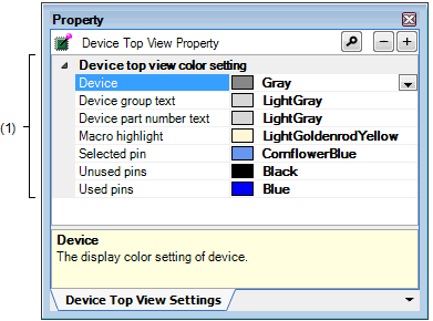 If this panel is already open, selecting a different [Device Top View] in the Project Tree panel changes the content displayed accordingly. |