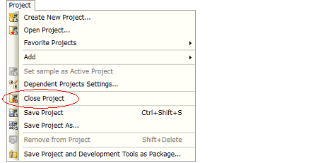 To close a project, select the [File] or [Project] menu >> [Close Project].
