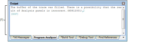 You can save the contents displayed on this tab to a text file (*.txt) by selecting [Save Output-Program Analyzer As...] from the [File] menu.