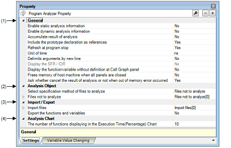 Select whether to free memory of the host machine when all of the panels provided by the analyze too (Function List panel, Variable List panel, Analysis Chart panel, Call Graph panel, Class/Member panel, and Variable Value Changing Chart (zoomed in) panel) are closed.