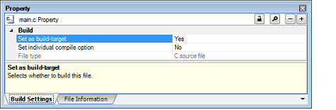 This property is displayed only when a C source file is selected on the project tree and [Yes] in the [Set as build-target] property is selected.