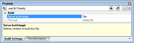 Property Panel: [Build Settings] Tab (When Selecting Library File)