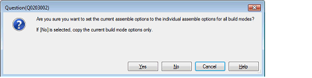 Select [Yes] in the [Set individual assemble option] property in the [Build] category. The Message Dialog Box will open.