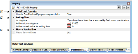 Note that this tab appears only when the selected microcontroller incorporates the data flash memory.