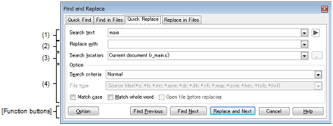 In this tab, search is done with the designated characters and then they are replaced to the characters to be replaced.