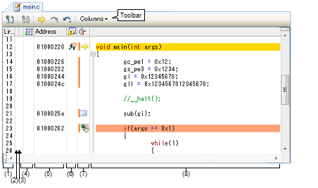 The Editor panel automatically opens with displaying the contents of the downloaded source file after a load module file is successfully downloaded.