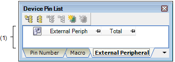 This area displays the device pin list for entering information on the pins connected to external peripheral parts.