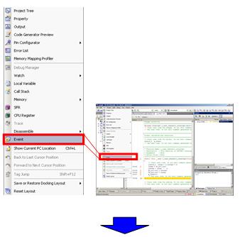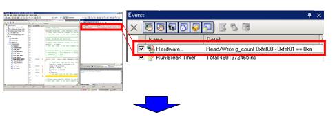 First, you must understand what "event" is. An event is the operation of microcontroller such as fetch, read and write. The event can be used as an action trigger to enable debugging functions such as setting a break point or tracing. The access break we have set in the previous section was the event to break the execution of the program when the value 10 is written (a write operation is performed) to the g_count (a specific address).
