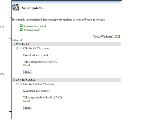 From the CS+ Update Manager window menu area, click [Microcontroller Name].