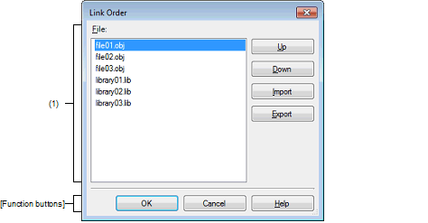The description order of the file names is acquired from the selected link order specification file, and then it is reflected in [File].