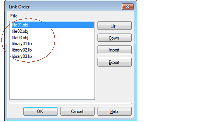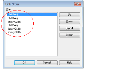 Click the [OK] button in the Link Order dialog box to set the input order of the files to the linker.