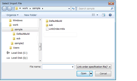 In the dialog box, select the link order specification file and click the [Open] button.