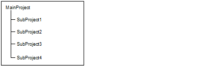 SubProject1 -> SubProject2 -> SubProject3 -> SubProject4 -> MainProject