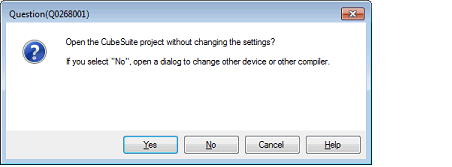 When a CubeSuite project file is selected, the following message dialog box will open.