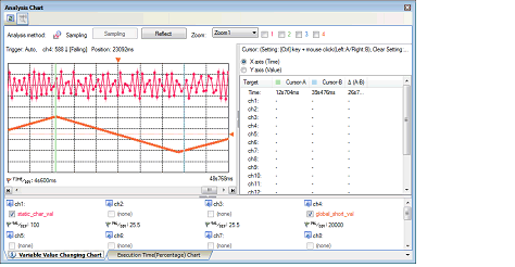 You can display the acquired function information and variable information (including the data information for Smart AnalogNote) in a chart.