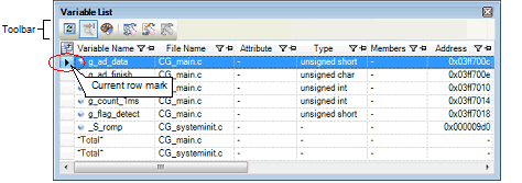 The latest variable information that can currently be displayed (see "1.1.2 Types of analysis information") is displayed on the following Variable List panel, which is opened by clicking the