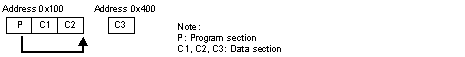 In the above example, section P is allocated from address 0x100, sections C1 and C2 are allocated immediately after section P, and section C3 is allocated from address 0x400. Since sections C1 and C2 are allocated continuously after section P, section P should be allocated behind section C2. Section C3 is not involved because it is not allocated continuously. |