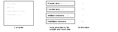 The correspondence between memory areas and sections for C/C++ programs and the standard library is described in table 3.30.