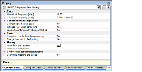Configure the operating environment on the Property panel below when using Full-spec emulator.
