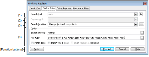 Find and Replace Dialog Box: [Find in Files] Tab