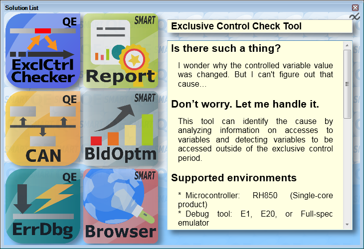 Renesas has prepared specialized solutions for the user's problems in order to solve various problems encountered in development.