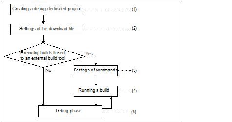 Creating a debug-dedicated project enables you to perform debugging without going through the build tool provided by CS+.