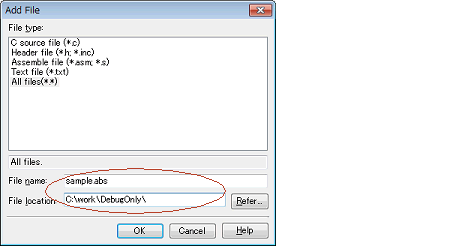 To perform source level debugging (step execution in source level units, etc.), a load module file with the symbol information must be added to the debug-dedicated project. |