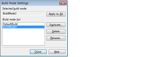 Select [Build Mode Settings...] from the [Build] menu. The dialog box will open.