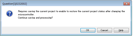 The [OK] button becomes valid when the selected microcontroller differs from the current microcontroller. |