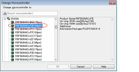 At this time, the current microcontroller is selected in the [Change microcontroller to] area.
