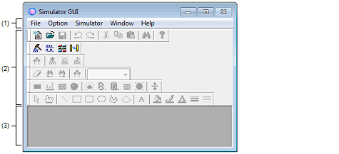 In Simulator GUI, other windows (Signal Data Editor window, Timing Chart window, I/O Panel window, and Serial window) are manipulated from this window.