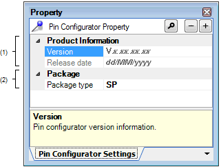 This tab displays information (Product Information and Package) on the [Pin Configurator (Design Tool)] selected in the Project Tree panel.