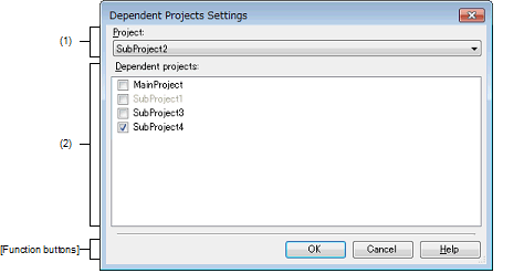 When an application project is related to the RH850 boot loader project, the boot loader project and the application project are fixed to the dependent-source project and the dependent project, respectively, and they cannot be changed.