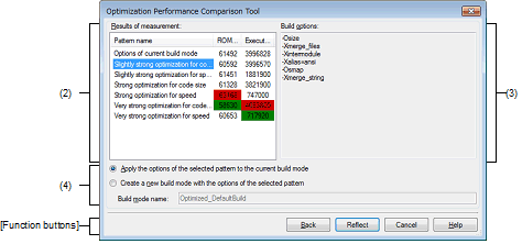 This wizard-type dialog box is used to measure and compare the ROM size or execution speed for the case in which the build options recommended by the build tool are applied.