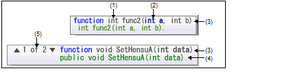 If the target is a class-type variable [CC-RX] that includes methods (functions) among its members, the types of the return values and names of the methods (functions) are displayed. Also, "(" ")" is appended to the end of each method name. |
