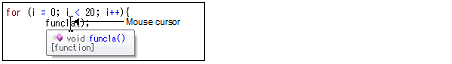 When candidates for the names of functions and variables are displayed by using the [Ctrl] + [Space] key combination while a class name is specified to the left and input of a method name is incomplete, the candidates displayed are the names of global functions and variables instead of candidates for the names of functions and variables in the class. |