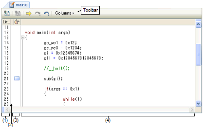 The Editor panel automatically opens with displaying the contents of the downloaded source file after a load module file is successfully downloaded.