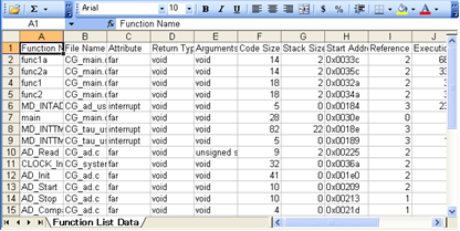 You can save the function list data in CSV and other formats, and edit and manage your analysis results in Excel and other applications. |