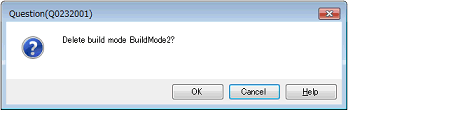 Select the build mode to be deleted from [Build mode list] and click the [Delete] button. The Message dialog box below will open.