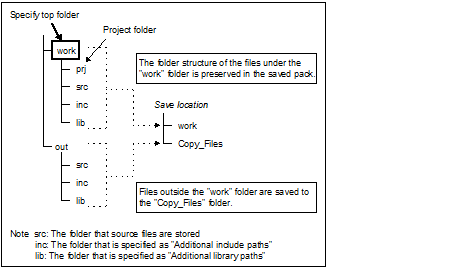 Specify the top folder of the packing target to save with the project folder structure preserved. |