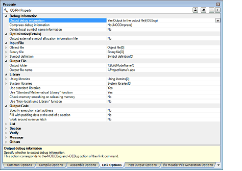 When [No(-NODEBug)] in the [Output debug information] property or [No(-NOCOmpress)] in the [Compress debug information] property in the [Debug Information] category is selected