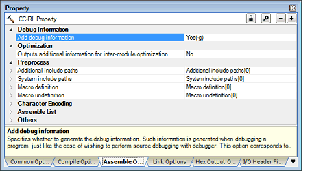 Select whether to generate the debug information. It is possible to perform source debugging with the debugger by outputting information for source debugging to the output file. |