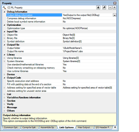 When [No(-NODEBug)] in the [Output debug information] property or [No(-NOCOmpress)] in the [Compress debug information] property in the [Debug Information] category is selected