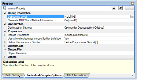Property Panel: [Individual Compile Options] Tab